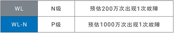 标准采用接触可靠性高的交叉式接点,支持一般负载和微小负载。*1在DC5V、1mA阻性负载下,相对于以往产品WL的N级,耐环境型的WL-N实现了P级和高可靠性。
