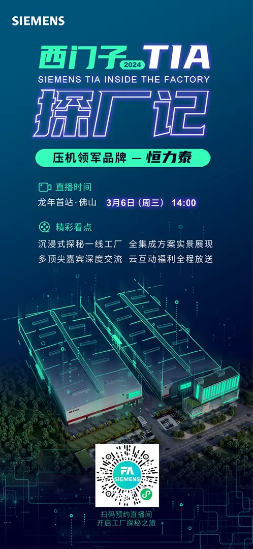 3月6日,西门子将与恒力泰联合开启一场探秘之旅。通过直播的形式,我们将带您深入探访恒力泰数字工厂,了解西门子软硬件解决方案如何助力恒力泰实现高效、精准的生产。