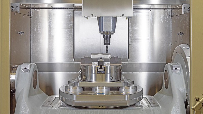 当计划进行6面加工时,WIKA的机床操作员会使用雄克KONTEC KSX-C2五轴虎钳,所需装调时间极短。虎钳的基础夹持行程为130 mm,支持钳口翻转或免工具快速更换。具有主动下拉功能,因此可进行第六面精加工。