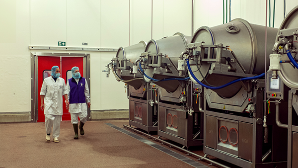 自创立之初,范德梅一直青睐GEA的经典品牌(如Belam、Wolfking、Scanio和CFS)。如今,萨森海姆工厂配备了众多GEA机器,包括盐水注射机(包括最新的创新型MultiJector注射机)、滚揉机、绞肉机、搅拌机、斩拌机以及最近推出的多功能切片机和拉伸膜包装机。