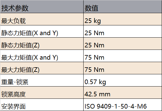 适用于有效载荷高达 25 kg 的协作机器人和有效负载高达 10 kg 的工业机器人。