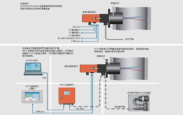 为了有效控制过滤器性能和功能监测,直接在过滤器下游连续测量粉尘浓度,测量设备对粉尘浓度变化的反应越灵敏、越迅速,工厂的设备就越能在没有粉尘渗透的情况下运行。