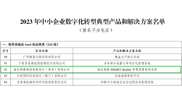 近日,中国工业互联网研究院公布了2023年中小企业数字化转型典型产品和解决方案名单。“海克斯康SMART Quality智慧质量管理系统”凭借强大的技术实力和广泛的行业认可成功入选。