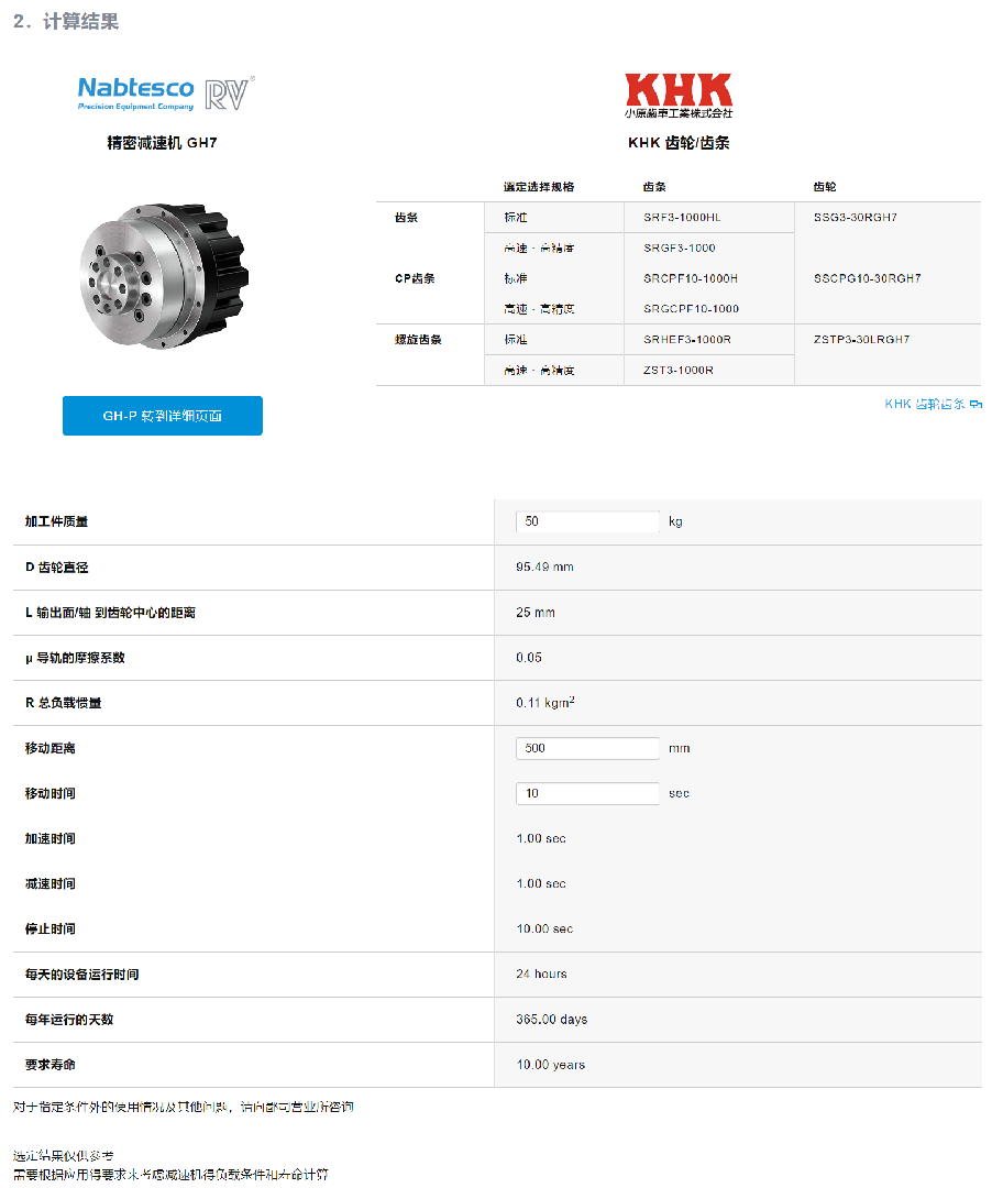 因为可以将选型结果显示的齿轮&齿条作为一个目标产品来考虑,所以对于新手设计人员来说,可以轻松地进行产品选型,有经验的设计人员则可以目标产品作为参考,为之后的产品选型打下更加轻松的基础。