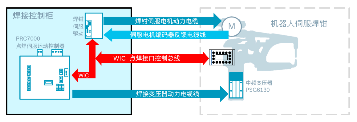 PRC7000控制器除了具备点焊的基本功能外,还集成了焊钳伺服电机的运动控制功能,直接驱动控制伺服点焊钳的打开和关闭焊接任务,以及电极帽的修磨控制,可100%实现点焊工艺的技术质量控制要求。