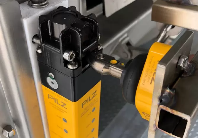 皮尔磁PILZ公司的PSEN me5系列开关符合EN ISO 14119标准要求,当结合门闩一起使用时1把PSEN me5开关的Interlock安全等级和guard lock安全等级就可以达到ISO 13849-1 PL d Cat.2。