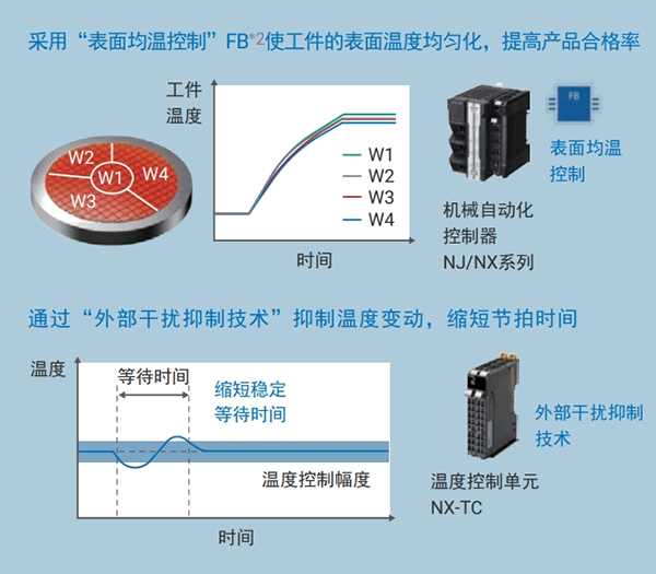 采用表面均温控制,会自动计算出保持工件表面温度均匀的加热器设定温度。并利用外部干扰抑制技术自动抑制固定外部干扰引起的温度变动。借助这些技术,无需花费工程工时,即可提高品质和生产效率。