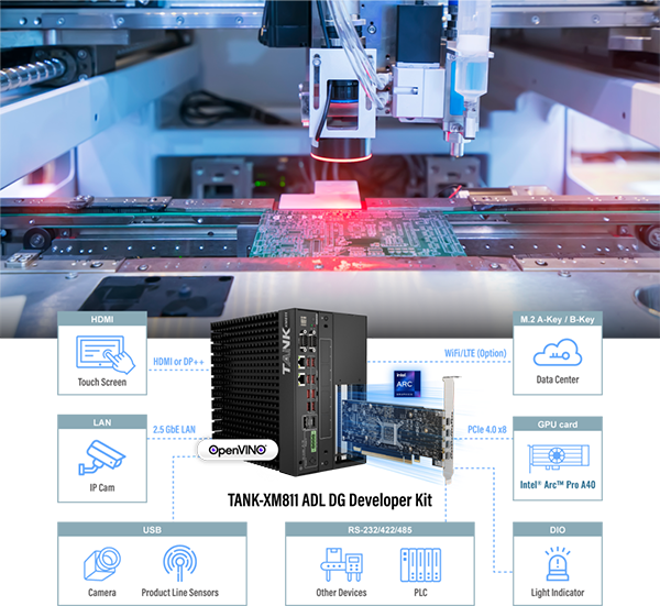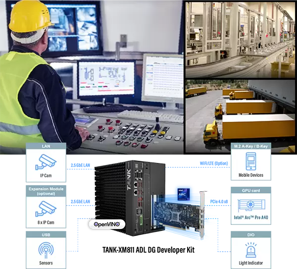在现代工厂场景中,安全是生产运营的核心之一。TANK-XM811 ADL DG开发套件是一款专为工厂环境设计的智能监控系统,它不仅仅是一台设备,更像是工厂生产的守护者。TANK-XM811 ADL DG 开发套件拥有多个USB端口、COM端口和LAN端口,可轻松支持多个IP通道或传感器的连接。搭载了Intel® OpenVINO Toolkit和Intel® Arc™ Pro A系列显卡,它具备强大的人工智能计算和图像识别能力。
