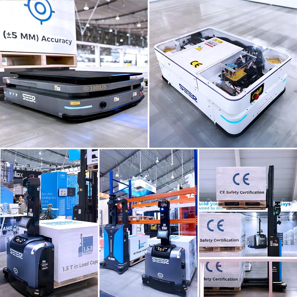 本次展会中,仙工智能带来了多款 CE 认证的移动机器人,内置安全型控制器 SRC-3000FS,该控制器通过 SGS TÜV SAAR 功能安全认证,内部集成安全 PLC,一体化设计释放更多内部空间,内核算力更强大,性能更稳定。