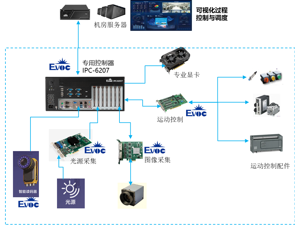 研祥智能精密高速点胶解决方案采用研祥IPC-6207专用控制器,来实现点胶设备现场各环节的数据采集,并将生产数据自动上传到服务器中,管理者只需要借助生成的处理数据,形成统计图表,实现数据可视化、智能化。