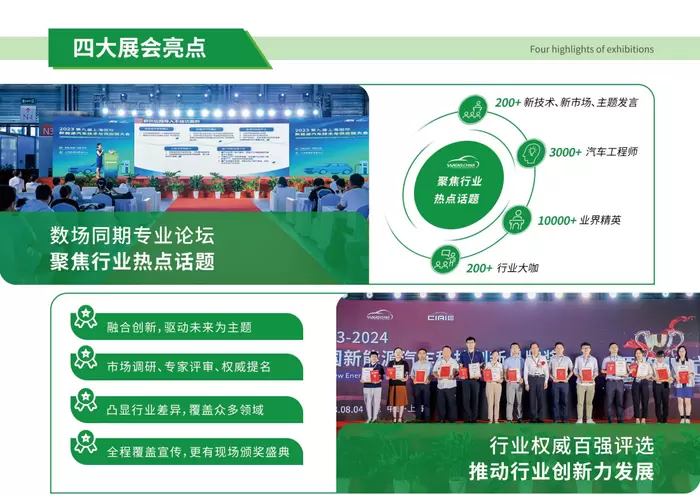 由英佛会展联合上海市汽车工程学会及相关行业组织等共同主办的 “2024第十二届上海国际新能源汽车技术与生态链博览会(NEAS CHINA 2024)” 将于2024年08月02日-04日在上海新国际博览中心隆重召开。同期整体展览面积将达70,000平米,预计观众规模将达80,000人以上,1,200+国内外参展商及品牌将亮相展会现场。旨在为企业的面对面商贸对接提供专业的平台,加快推进碳中和愿景目标下的汽车产业全面电动化转型,进一步加强全球新能源汽车产业协同合作,打造可持续的新能源汽车产业链供应链,共同构建全球汽车产业绿色低碳可持续发展新生态,全力推动汽车强国建设新跨越。