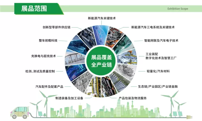 新能源乘用车、商用车,特种车,物流车,氢燃料电池汽车;新能源汽车动力总成系统,电子系统,车身系统,内外饰系统,底盘系统,相关部件、标准件、通用件、附件等;