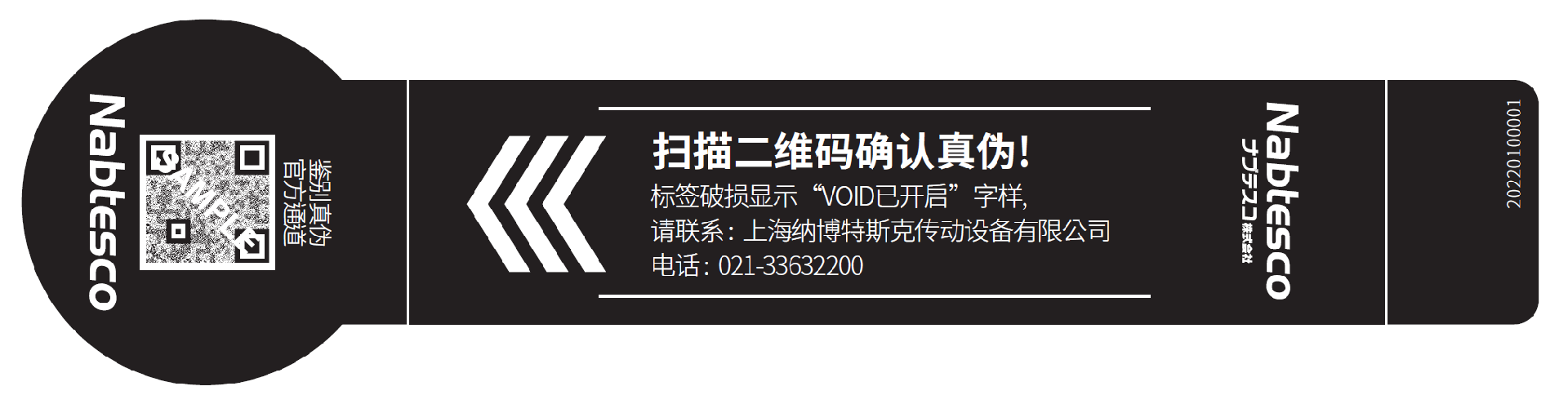 请注意!!!如采购时遇到露出“VOID已开启”字样的标签,可能是该标签被不法厂商二次利用。请立刻停止采购,并与纳博特斯克联系。