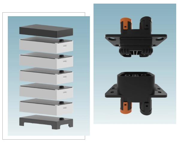 菲尼克斯电气堆叠式连接器,专为户用储能电池系统堆叠式应用开发。创新的盲插结构、坚固的结构设计为堆叠式电池连接提供安全可靠的连接解决方案。