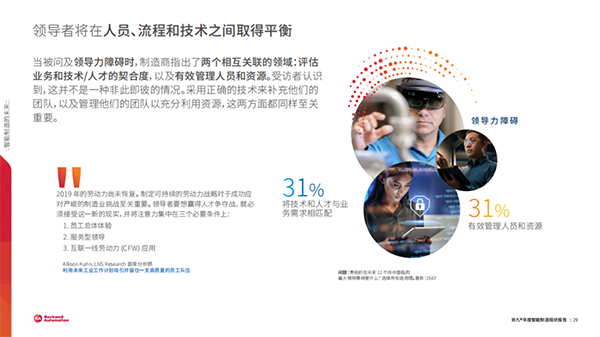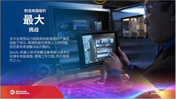 罗克韦尔自动化高级副总裁兼首席技术官 Cyril Perducat 表示:“技术娴熟的员工队伍是任何制造运营成功的基石,而想要吸引、管理并留住员工是一项持续的挑战。调查显示,单靠技术是无法解决问题的。为了保持竞争力,制造商需要让员工拥抱先进技术。这将是企业不断发展的文化核心,从而推动技术合作与员工合作,以及业务的发展。”