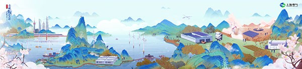 以展览连接世界,面向全球伙伴。此次上海电气打造《零碳千里江山图》,全图景展示能源及工业系统解决方案,画卷融汇中国传统元素,将德系线条元素融会贯通,为工业与能源行业注入艺术元素,促进中西方文化交融对话,共绘人与自然和谐共生的美好愿景。