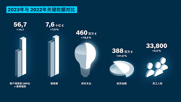 博世力士乐 2023 年与 2022 年业务数据对比(图源:博世力士乐)
