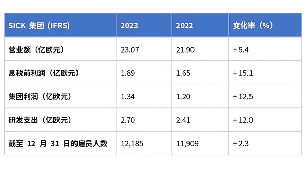 在充满挑战的 2023 财年,SICK集团继续保持了稳健增长的态势。集团营业额增长 5.4%,达到23.07亿欧元。扣除汇率影响因素后,集团营业额甚至较之前一年增长了8.8%。整体财务状况和收益情况良好。