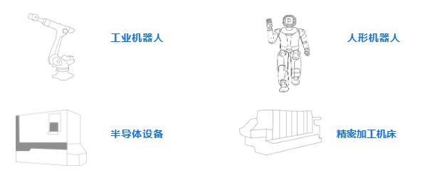 主要应用于金属加工机、医疗器械、仿人机器人、工业机器人、航空航天和半导体制造等领域。