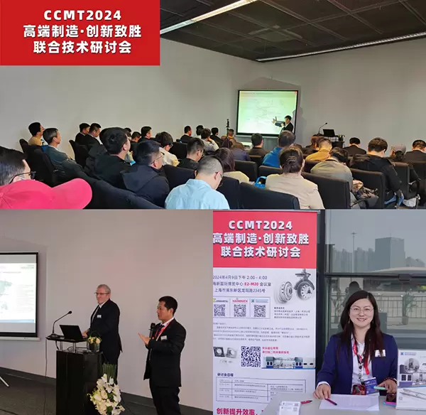 4月9日下午,魏因加特纳机械制造有限公司亚太区销售总监罗伯特·毛泽先生 (Mr.Robert Moser)和中国区销售经理李文增先生参与了由瀚柏格夹具系统技术(上海)有限公司、肯纳亚洲(中国)企业管理有限公司和魏因加特纳机械制造有限公司联合举办的“CCMT2024高端制造 ·创新致胜技术研讨会”,演讲主题为“魏因加特纳高端复合加工工艺”,展示了魏因加特纳公司的车铣复合加工技术实力和创新能力,与金属加工行业用户共同探讨了智能化的高端制造技术,提高生产效率,实现可持续发展。