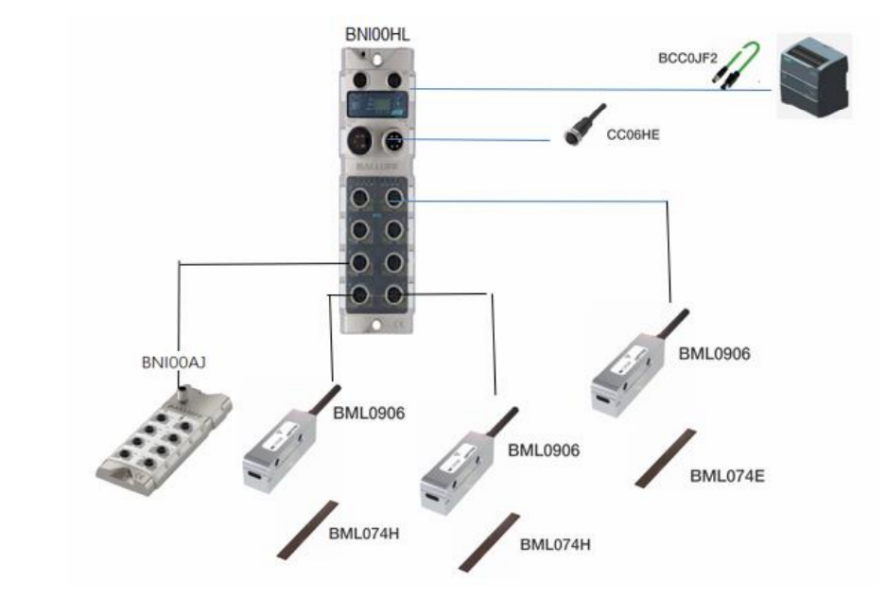 IO-Link主站与分布式IO模块和BML相连,用于伺服电机操作、监控设备就位状态和产品生产过程信息的追溯。