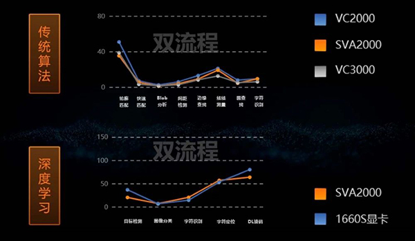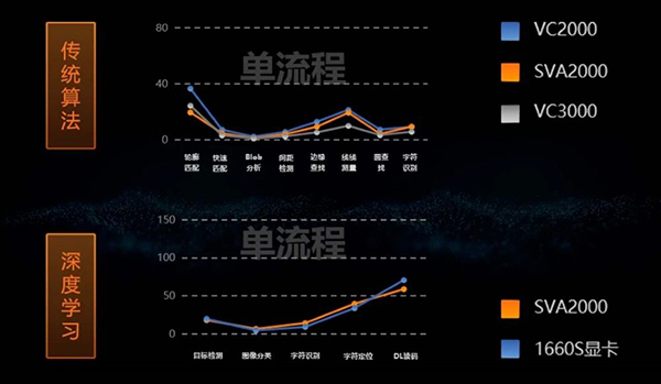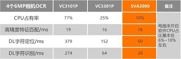 SVA2000利用硬件平台的异构特性对软件架构和算法效率进行了深度优化,在4相机应用场景下,它的性能可以对齐桌面级CPU和GPU,能够满足大部分多相机视觉应用的节拍要求。