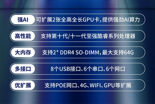 研祥智能MGP-800采用英特尔W480E芯片组,支持第十代/十一代至强酷睿系列处理器,拥有强大的计算能力和处理性能,同时可扩展2张全高全长GPU运算卡,具备超凡AI计算能力,可处理大规模数据集和复杂的神经网络模型。