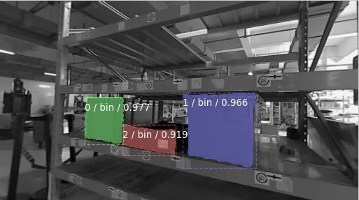 通过TOF相机对货架上的料箱进行识别定位,引导CTU机器人夹取料箱;相机内部对料箱完成深度学习实例分割,结合深度信息完成精准定位;可兼容不同颜色、材质、工况的料箱,适配工作距离与角度范围广,边缘误差<2mm,角度误差<0.2°。