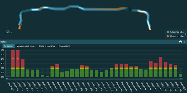 借助这套系统,他们不仅告别了使用游标卡尺等效率低下的传统检测方式,而且真正实现了对管件零件精确、高效、全面的尺寸检测,用户再也不需要像以前那样几个人在车间现场,站在旧的测量系统周围,争论谁的测量数字是正确的——因为TubeInspect拥有极高的测量重复性,无论是谁来操作测量结果都是一样准确的。
