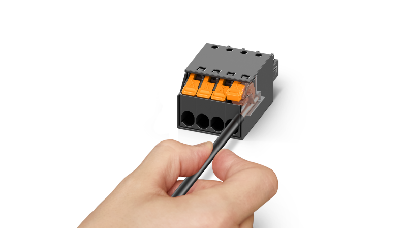 行业独一无二的Push-X技术可以快速直连多股软导线,省去压线环节,极大减少现场接线作业中导线处理时间。并且自带操作拨杆可以实现免工具快速退线,进一步提高现场接线工作的便捷性。