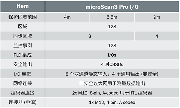 ► microScan3 Pro I/O 融合了本地I/O(包括4 对OSSDs安全输出信号,8对区域切换信号及2对编码器输入接口),通用以太网(测量数据输出,可用于导航、定位、配置和诊断等应用)。