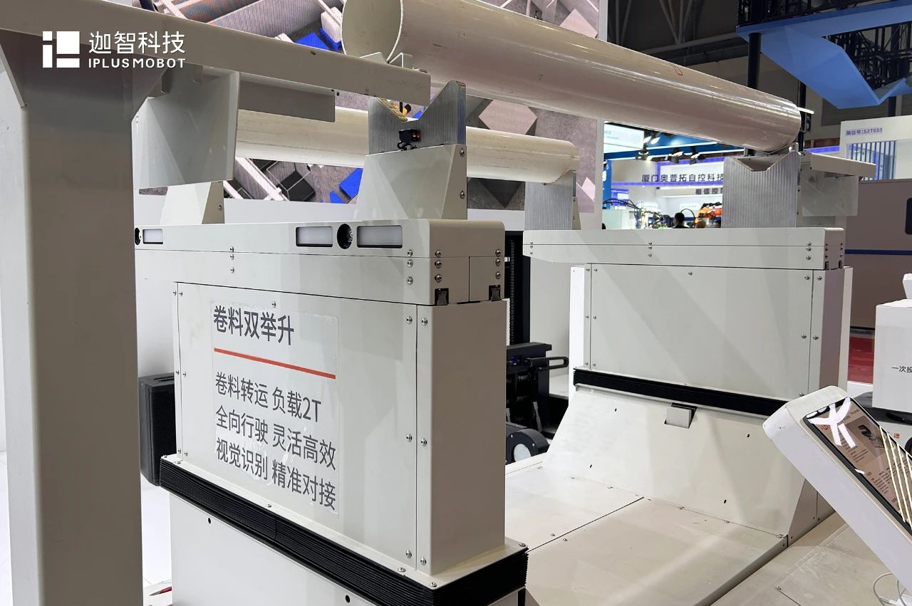 迦智锂电双举升AMR,适用于锂电涂布、辊压、分切等工艺环节,实现了箔材料卷及空卷轴的自动无人化搬运与上下料;对接精度高,双举臂设计,轻松实现空满交换,提高搬运效率;同时AMR支持全向移动,可灵活进出各种狭窄通道;车体具备多重安全防护功能,保障人机共融作业时的安全高效。