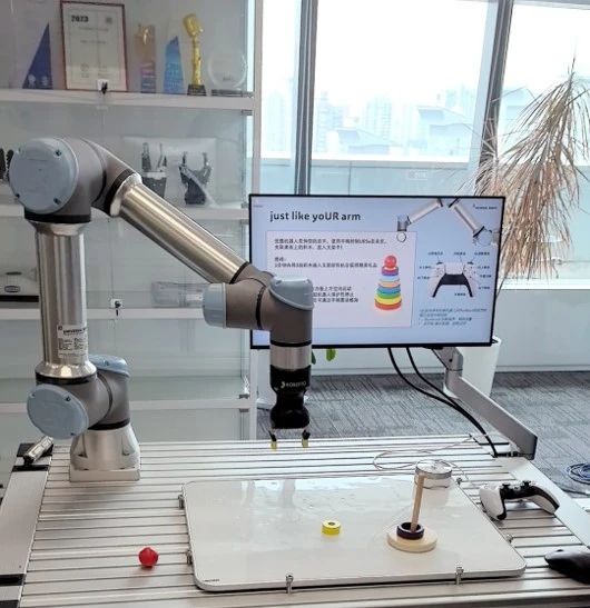 将UR5e配置上即插即用的末端操作工具Robotiq,即可随时通过手柄远程控制机器人,完成精密电子仪器设备、电子制造无人车间内的封闭性任务。