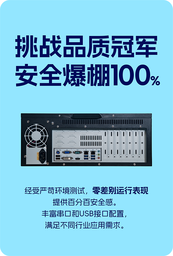 经受严苛环境测试,零差别运行表现,提供百分百安全感。丰富串口和USB接口配置,满足不同行业应用需求。