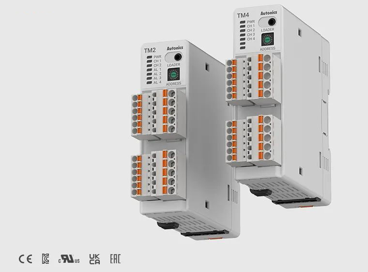 TM系列模块型PID温度控制器能够同时控制多达4个通道(TM4)或2个通道(TM2)。使用扩展连接器,TM系列可以轻松扩展以控制多达124/62个通道(TM4 / TM2),无需额外的电源或通信接线。温度控制器具有高速采样周期(TM4:100 ms / TM2:50 ms),RS485通信支持以及同步加热和制冷控制。附带的DAQMaster软件可轻松通过PC进行参数配置和状态监控。