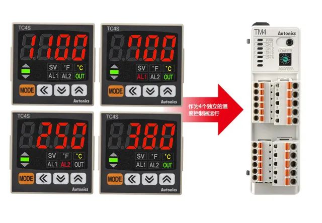 TM系列温度控制器能够控制2路或4路输入和输出,能够作为4个独立的温度控制器运行。