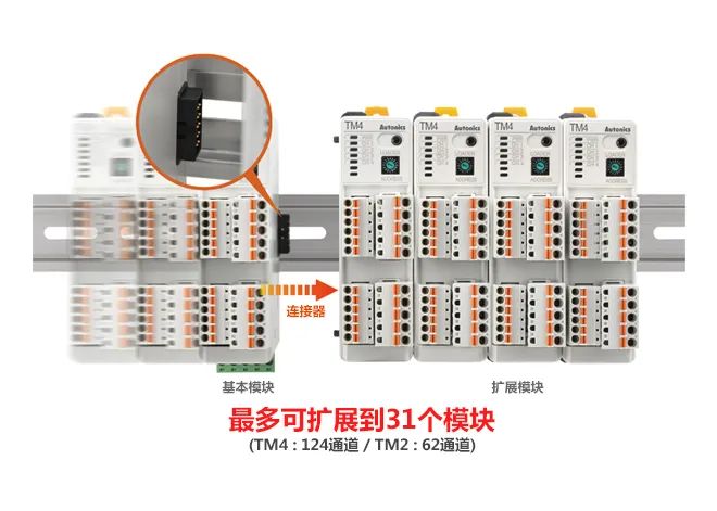 - 最多可扩展31个模块(124通道/62通道)