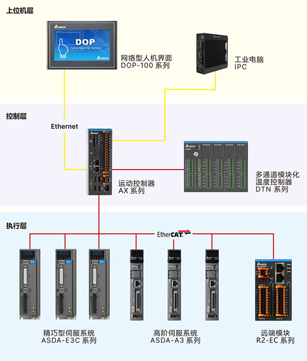 精巧型伺服系统相比传统伺服可节约30%安装空间,更适应设备小型化需求;2.5kHz的响应能力满足设备的效率和平稳作业要求。