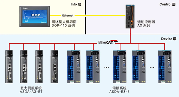 应用大功率多轴模块化伺服系统满足最大110kW的高功率需求;二次平台功能更好地满足客户开发需求;应用于硅棒开方切割等设备中,实现罗拉间负荷分配,确保加工稳定。