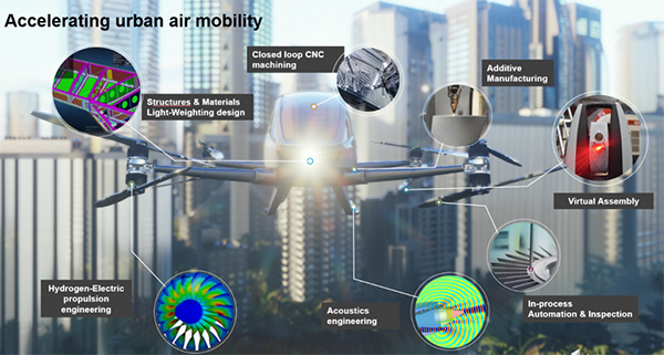 大会同期,海克斯康展出了面向eVTOL、无人机、直升机、传统固定翼飞机等低空经济产业的系列解决方案。从氢电力推进工程设计仿真、声学仿真、结构与材料轻量化设计到闭环数控加工、增材制造,再到在线自动化检测、虚拟装配等生产全流程,海克斯康都能提供对应的解决方案,充分满足涵盖飞行、制造、维护等低空经济产业链数字化高质量发展需求。