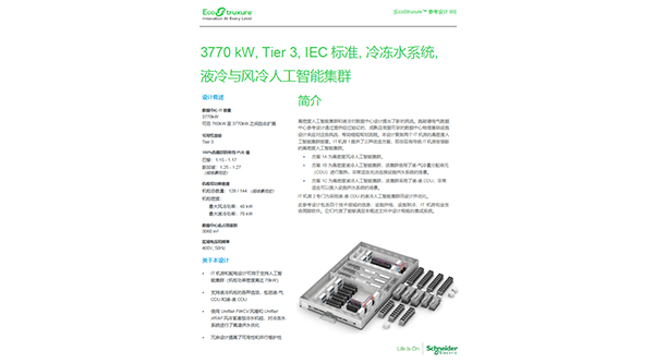 施耐德电气此次发布的99号参考设计,覆盖了存量数据中心改造和新建智算中心的机电系统设计,聚焦设施供电、制冷、IT机房、全生命周期软件四个技术领域,为IT容量高达3770kW人工智能集群提供一套完整的参考设计框架,以满足不同应用场景的需求: