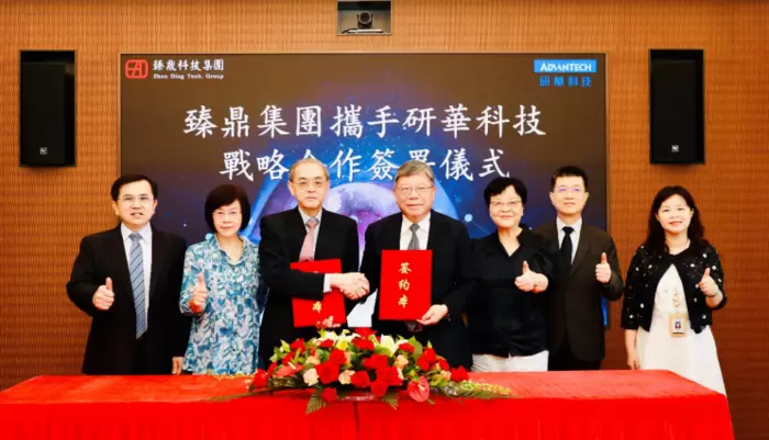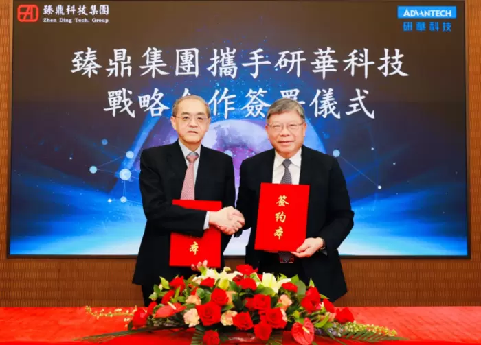 深圳,6月17日,2024 – 全球工业物联网领导厂商研华公司 (TWSE:2395)与全球PCB领导厂商臻鼎科技集团(TWSE:4958)在深圳鹏鼎时代大厦签署战略合作协议,双方将建立全面战略性合作伙伴关系,推动PCB产业的数字化、智慧化和绿色化发展。首波合作将以研华智能制造方案、生产安全管理系统及智能能源管理方案,助力臻鼎科技集团(以下简称臻鼎)工厂及园区的数智化和低碳发展,未来更将围绕生成式AI在PCB产业场景中的落地应用展开探讨实践。