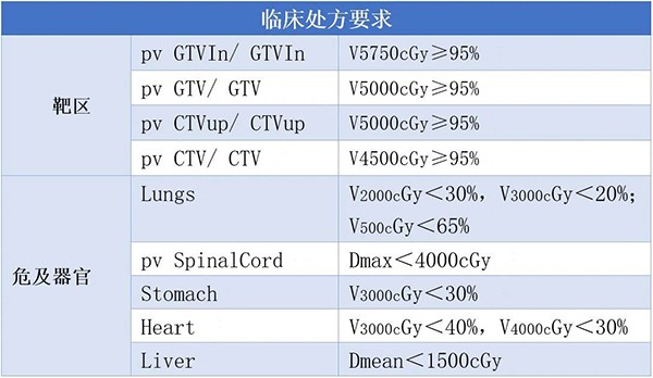 医院参考的危及器官限量标准主要是2021版 Dr.Timmerman 危及器官限量表,下表是患者的处方要求: