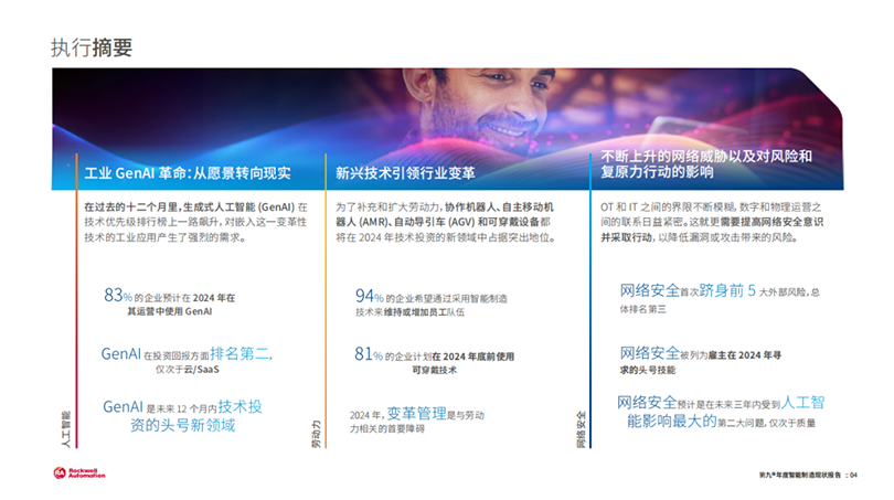 最近发布的《智能制造现状报告》指出,AI 成为制造商达成业务成果的首选。事实上,83% 的制造商计划在 2024 年运营中运用 GenAI。得益于本次合作,英伟达成为罗克韦尔 PartnerNetwork™ 的官方成员,而罗克韦尔客户也可以依托英伟达的应用提升运营弹性、灵活性和可持续性。
