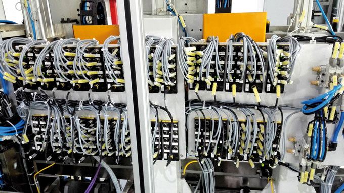 在汽车差速器组装线上, IO-Link技术得到了广泛应用。差速器组装线上不仅有大量的接近开关检测气缸、夹具、差速器组件的到位信号,而且还有气阀、电磁阀等执行机构来完成控制系统的命令。由于这些接近开关和电磁阀分布在工作台的各个位置,而这些工作台的空间是极其有限的,在以往采用集中式的控制方式作业时,往往会有大量的线缆穿插在工作台中进入控制柜,不利于调试和后期设备维护。那么,有没有一种可灵活配置、节省空间、布线方便、节本增效,同时系统在传感器层还具有诊断功能的整体解决方案,以满足汽车差速器组装线的自动化转型升级需求呢?