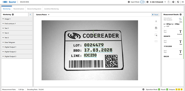 堡盟IDC230的出现,为IDC多码读码产品线再次增添了新的力量。除了多码读码功能之外,升级的字符识别功能为其在产品追溯领域打开了新的市场,如标签及胶签打印行业、芯片制造、高端零部件、医疗及生命科学等领域的复杂数据采集开辟了新的方法。