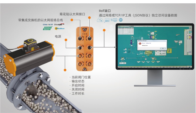 智能阀门位置传感器MVQ通过IO-Link可以提高对阀门状态的洞察,在早期警示阀门的运动变化情况,避免发生生产质量问题