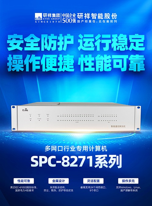 方案采用研祥智能SPC-8271系列多网口行业专用计算机,具备网络安全实时监视、历时审计、预测分析等功能,让电力监控系统更安全、更稳定、更可靠!