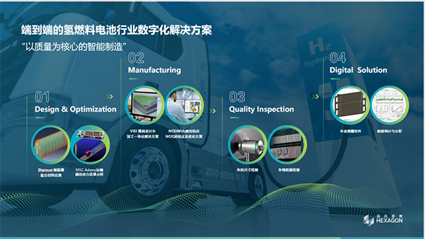 通过从设计工程、加工制造、计量测试的端到端解决方案,海克斯康提供了氢燃料电池行业端到端的数字化解决方案,提供“以质量为核心的智能制造”解决方案。