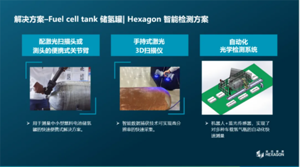 海克斯康凭借其在精密测量领域的深厚技术积累,推出了针对储氢罐的多种方案组合,包括便携式关节臂、手持式扫描仪、自动化光学检测等适用不同检测场景的技术方案,旨在为储氢罐制造企业的质量控制提供强有力的支持。